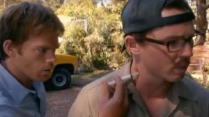 The most heart-pounding storyline of the episode was the chase between Dexter and Boyd, the dead-animal remover who also happened to kill young women. Dexter agrees to do a ride-along with Boyd, to see if he might be interested in his line of work (Dexter lies and tells him he’s out of work). He sets up a kill room and as he’s about to make his move on him, Boyd turns around and shoots him with a tranquilizer gun. Both men are taken to the hospital, which they quickly escape. Dexter is finally able to sedate Boyd back at his house and has to set up a make-shift kill room, but that’s where things really get interesting.